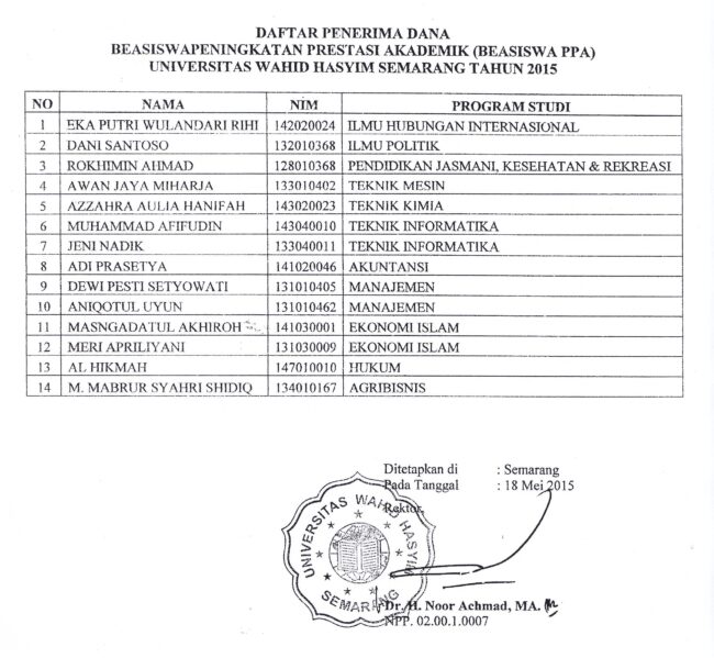 Selamat kepada mahasiswa yang menerima beasiswa PPA dan BBP PPA Tahun 2015